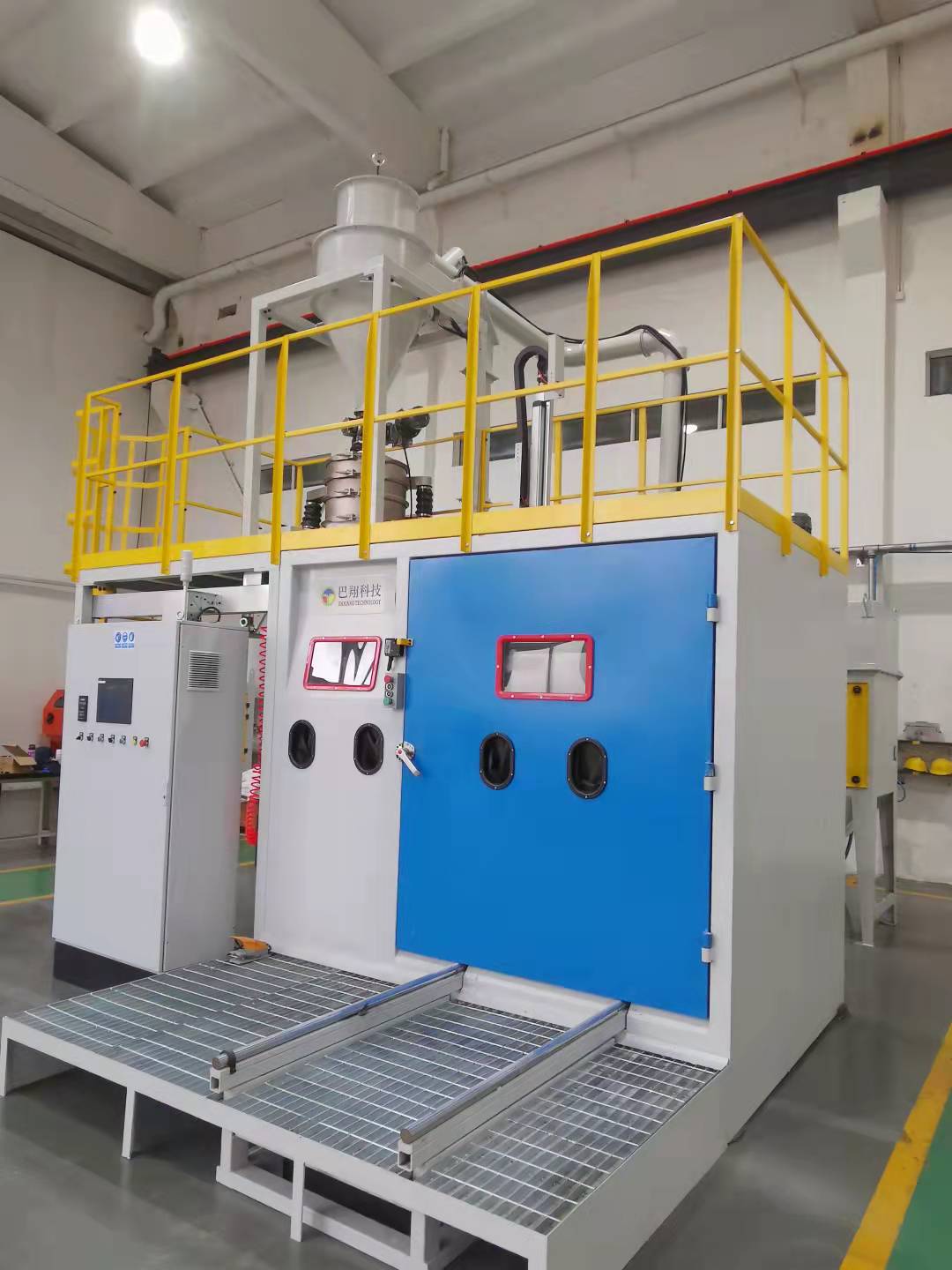 6)噴丸機采用2套料倉,分別儲存500KG鋼絲切丸和白剛玉,2套自動加料斗實現丸料的閉環控制。